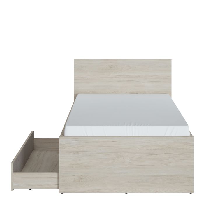 Denim 90cm Bed with 1 Drawer in Light Walnut, Grey Fabric Effect and Cashmere