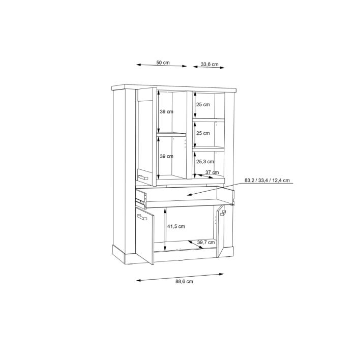 Barcelona China Cabinet 2 Doors with Glass + 3 Drawers in Jackson Hickory Oak
